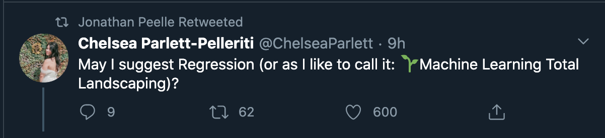 class: center, middle, inverse, title-slide # Regression --- ## Recap - Correlations are their own effect size - On a scale of -1 to 1 - Useful for depicting relationships --- name: reg ## Today **Regression** - What is it? Why is it useful - Nuts and bolts - Equation - Ordinary least squares - Interpretation --- ## Regression - Regression is an umbrella term -- lots of things fall under "regression" - This system can handle a variety of forms of relations, although all forms have to be specified in a *linear* way. -- The output of regression includes both effect sizes and statistical significance. We can also incorporate multiple influences (IVs) and account for their intercorrelations.  --- ### Regression - **Scientific** use: explaining the influence of one or more variables on some outcome. + Does this intervention affect reaction time? + Does self-esteem predict relationship quality? - **Prediction** use: We can develop models based on what's happened in the past to predict what will happen in the figure. + Insurance premiums + Graduate school... success? - **Adjustment**: Statistically control for known effects + If everyone had the same level of SES, would abuse still be associated with criminal behavior? --- ### How does Y vary with X? - The regression of Y (DV) on X (IV) corresponds to the line that gives the mean value of Y corresponding to each possible value of X - "Our best guess" regardless of whether our model includes categories or continuous predictor variables --- name: eq ## Regression Equation `$$\Large Y = b_{0} + b_{1}X +e$$` `$$\Large \hat{Y} = b_{0} + b_{1}X$$` ??? `\(\hat{Y}\)` signifies the predicted score -- no error The difference between the predicted and observed score is the residual ($e_i$) There is a different `\(e\)` value for each observation in the dataset --- name: ols ## OLS - How do we find the regression estimates? - Ordinary Least Squares (OLS) estimation - Minimizes deviations $$ min\sum(Y_{i}-\hat{Y})^{2} $$ - Other estimation procedures possible (and necessary in some cases) --- <img src="25-slides_files/figure-html/plot1-1.png" style="display: block; margin: auto;" /> --- <img src="25-slides_files/figure-html/unnamed-chunk-3-1.png" style="display: block; margin: auto;" /> --- <img src="25-slides_files/figure-html/unnamed-chunk-4-1.png" style="display: block; margin: auto;" /> --- <img src="25-slides_files/figure-html/unnamed-chunk-5-1.png" style="display: block; margin: auto;" /> --- <img src="25-slides_files/figure-html/unnamed-chunk-6-1.png" style="display: block; margin: auto;" /> ## compare to bad fit --- `$$\Large Y = b_{0} + b_{1}X +e$$` `$$\Large \hat{Y} = b_{0} + b_{1}X$$` `$$\Large Y_i = \hat{Y_i} + e_i$$` `$$\Large e_i = Y_i - \hat{Y_i}$$` --- ## OLS The line that yields the smallest sum of squared deviations `$$\Large \Sigma(Y_i - \hat{Y_i})^2$$` `$$\Large = \Sigma(Y_i - (b_0+b_{1}X_i))^2$$` `$$\Large = \Sigma(e_i)^2$$` -- In order to find the OLS solution, you could try many different coefficients `\((b_0 \text{ and } b_{1})\)` until you find the one with the smallest sum squared deviation. Luckily, there are simple calculations that will yield the OLS solution every time. --- ## In `R` What if we regress parent height onto child height? .code-small[ ```r fit.1 <- lm(child ~ parent, data = galton.data) summary(fit.1) ``` ``` ## ## Call: ## lm(formula = child ~ parent, data = galton.data) ## ## Residuals: ## Min 1Q Median 3Q Max ## -7.8050 -1.3661 0.0487 1.6339 5.9264 ## ## Coefficients: ## Estimate Std. Error t value Pr(>|t|) ## (Intercept) 23.94153 2.81088 8.517 <2e-16 *** ## parent 0.64629 0.04114 15.711 <2e-16 *** ## --- ## Signif. codes: 0 '***' 0.001 '**' 0.01 '*' 0.05 '.' 0.1 ' ' 1 ## ## Residual standard error: 2.239 on 926 degrees of freedom ## Multiple R-squared: 0.2105, Adjusted R-squared: 0.2096 ## F-statistic: 246.8 on 1 and 926 DF, p-value: < 2.2e-16 ``` ] > A 1-unit change in X predicts a *b* change in Y > A 1-standard deviation change in X predicts a *b* standard deviation change in Y ??? **Things to discuss** - Coefficient estimates - Statistical tests (covered in more detail soon) --- ## Child Height Predicted By Parent Height <img src="25-slides_files/figure-html/unnamed-chunk-8-1.png" style="display: block; margin: auto;" /> --- ### Data, predicted, and residuals ```r library(broom) model_info = augment(fit.1) head(model_info) ``` ``` ## # A tibble: 6 x 8 ## child parent .fitted .resid .std.resid .hat .sigma .cooksd ## <dbl> <dbl> <dbl> <dbl> <dbl> <dbl> <dbl> <dbl> ## 1 61.7 70.5 69.5 -7.81 -3.49 0.00270 2.22 0.0165 ## 2 61.7 68.5 68.2 -6.51 -2.91 0.00109 2.23 0.00462 ## 3 61.7 65.5 66.3 -4.57 -2.05 0.00374 2.23 0.00787 ## 4 61.7 64.5 65.6 -3.93 -1.76 0.00597 2.24 0.00931 ## 5 61.7 64 65.3 -3.60 -1.62 0.00735 2.24 0.00966 ## 6 62.2 67.5 67.6 -5.37 -2.40 0.00130 2.23 0.00374 ``` ```r describe(model_info) ``` ``` ## vars n mean sd median trimmed mad min max range skew ## child 1 928 68.09 2.52 68.20 68.12 2.97 61.70 73.70 12.00 -0.09 ## parent 2 928 68.31 1.79 68.50 68.32 1.48 64.00 73.00 9.00 -0.04 ## .fitted 3 928 68.09 1.16 68.21 68.10 0.96 65.30 71.12 5.82 -0.04 ## .resid 4 928 0.00 2.24 0.05 0.06 2.26 -7.81 5.93 13.73 -0.24 ## .std.resid 5 928 0.00 1.00 0.02 0.03 1.01 -3.49 2.65 6.14 -0.24 ## .hat 6 928 0.00 0.00 0.00 0.00 0.00 0.00 0.01 0.01 1.99 ## .sigma 7 928 2.24 0.00 2.24 2.24 0.00 2.22 2.24 0.01 -2.39 ## .cooksd 8 928 0.00 0.00 0.00 0.00 0.00 0.00 0.02 0.02 3.44 ## kurtosis se ## child -0.35 0.08 ## parent 0.05 0.06 ## .fitted 0.05 0.04 ## .resid -0.23 0.07 ## .std.resid -0.23 0.03 ## .hat 3.47 0.00 ## .sigma 8.62 0.00 ## .cooksd 17.34 0.00 ``` ??? Point out the average of the residuals is 0, just like average deviation from the mean is 0. --- name: fit ## Are we doing a good job? - The way the world is = our model + error - How good is our model? Does it "fit" the data well? -- To assess how well our model fits the data, we simply take all the variability in our outcome and partition it into different